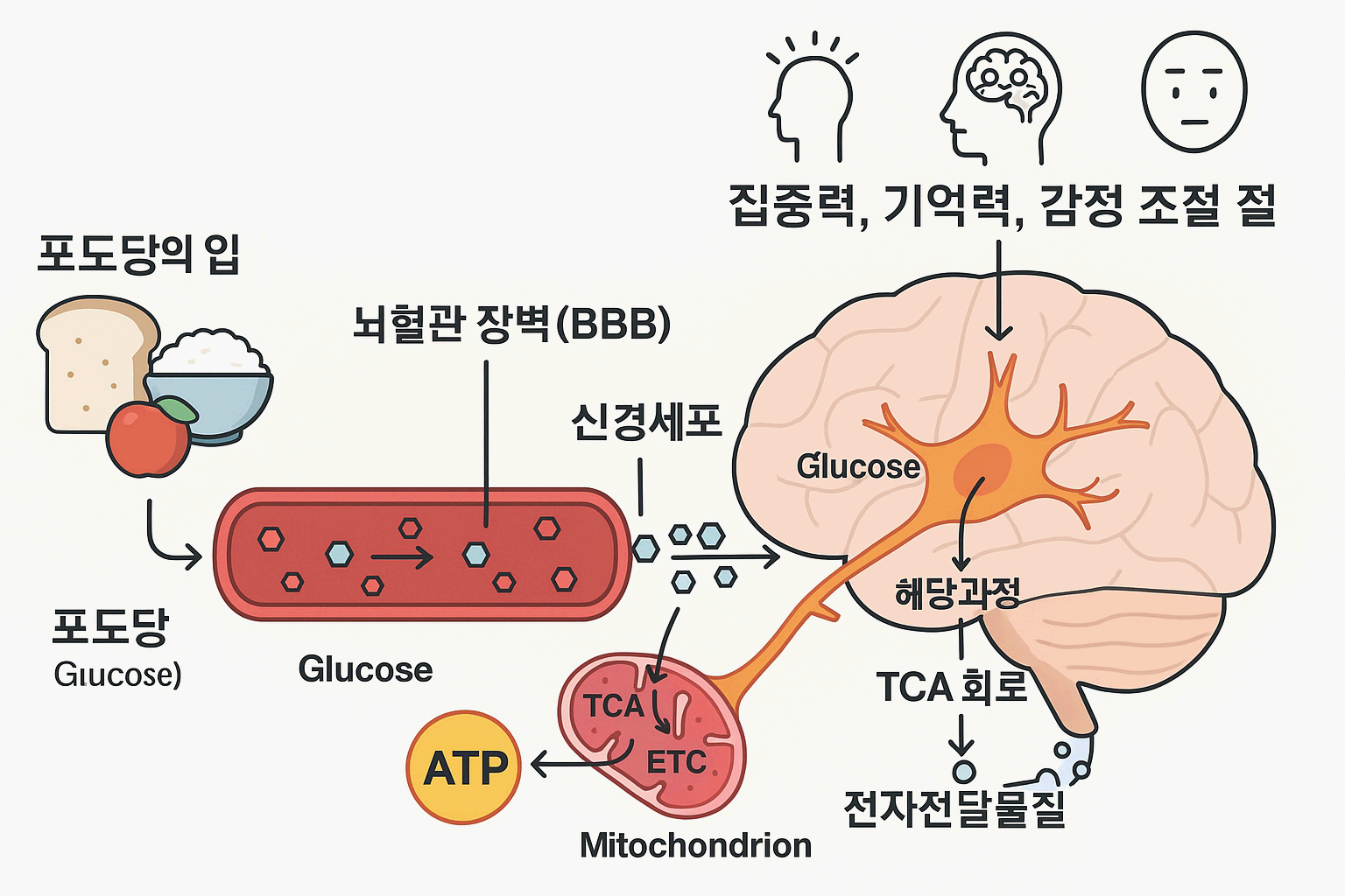 - 설명: 포도당 대사의 최종 산물은 단순한 에너지원이 아니라 인지 기능과 정서 안정 유지에 직접 기여
